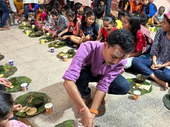Our Nagpur team recently organized a heartfelt Kanyadaan Bhoj, continuing a cherished Sanatan tradition that celebrates purity, compassion, and community bonding. The event brought together young girls and volunteers in a warm, spiritual atmosphere filled with devotion and seva. The photograph beautifully captures the essence of the occasion—volunteers serving food with humility, children seated together in joy, and each plate lovingly prepared on traditional leaf pattals. The environment radiated positivity as our team ensured that every child felt welcomed, respected, and cared for. Kanyadaan Bhoj is not merely a meal; it is an offering of blessings. It reflects the belief that serving young girls is equivalent to serving the divine feminine. Our Nagpur team embodied this spirit wholeheartedly—serving food, interacting with the children, and creating an atmosphere of dignity and affection. Their efforts echo the core values of our organization: seva, samskara, and sanskriti. It is through such acts of collective harmony that we keep our cultural roots alive and pass them forward to younger generations. Team Ramdoot Restores continues its journey of meaningful service—nourishing hearts, preserving traditions, and strengthening community bonds.