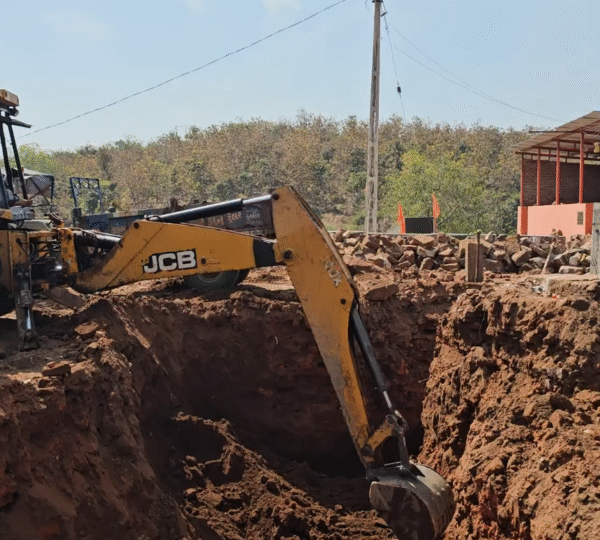 Deep excavation work was initiated to prepare the 15-feet foundation for the stone temple. This step ensures a strong and stable base for the upcoming construction.
