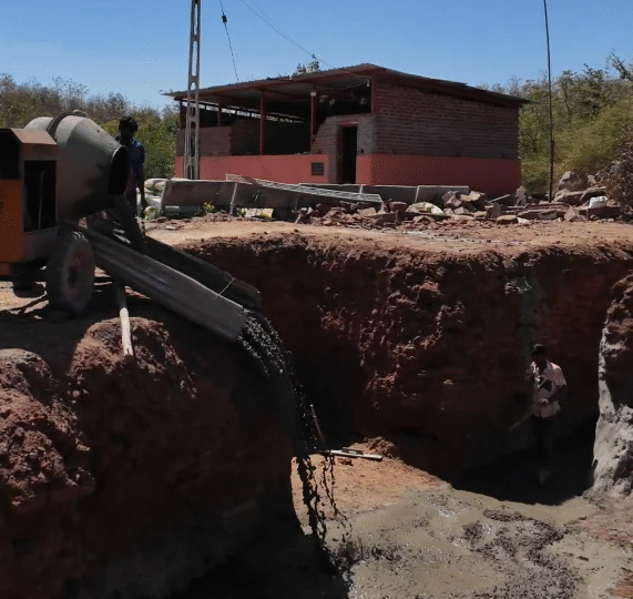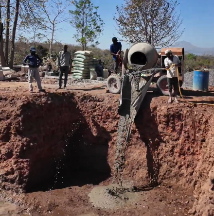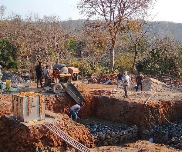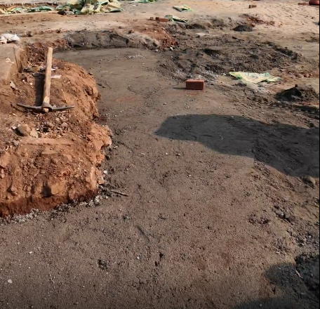 Concrete was poured and compacted to bind the stone layers and strengthen the foundation. Proper leveling was done to maintain uniform strength across the entire structure.