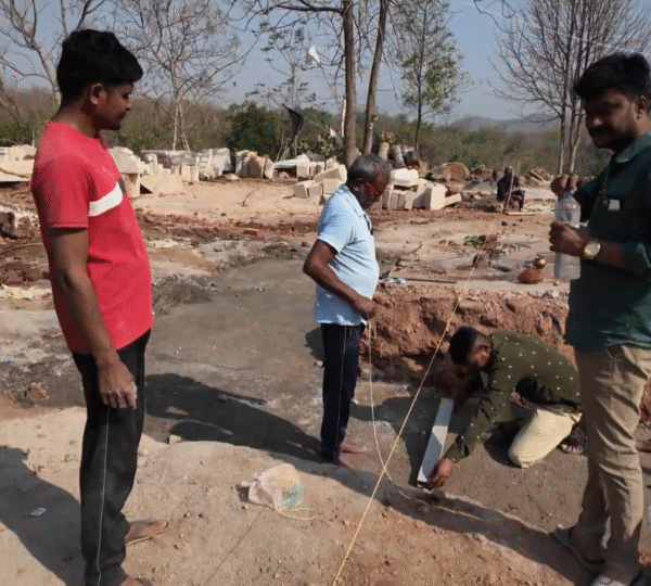 Precise measurements and alignment were completed as per the temple layout plan. This ensures accuracy and structural balance for the future stone temple.